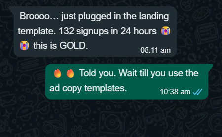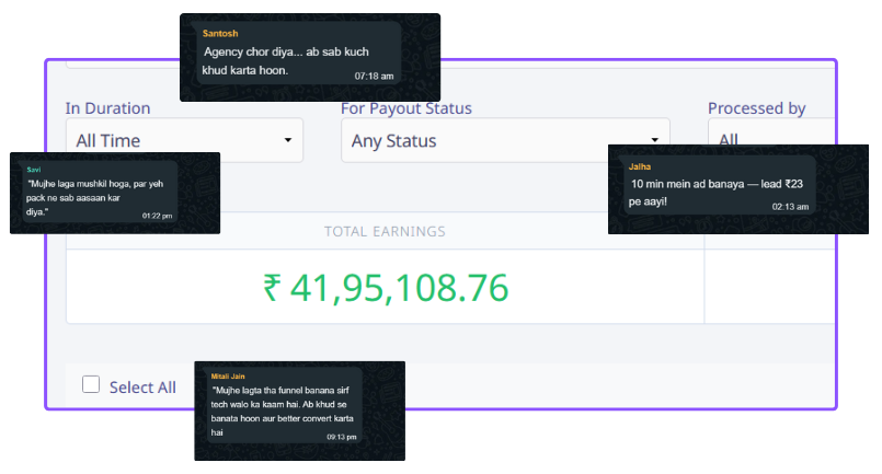 BONUS #2: Our Personal Campaign Copy Swipe File:Gain insider access to actual ad scripts, copies, and WhatsApp messages we’ve used to generate lakhs in revenue for our private clients.